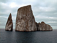 サンクリストバル島の近くに、ぽつんと海中からそびえ立つ大きな岩の固まりがあります。これがキッカーズロックという岩で、なかなか迫力があります。GE2はわざわざこの周りを1周してくれてからランディングのポイントへ向かいます。