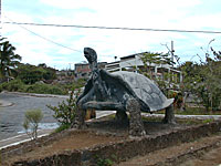 ひとしきり全体を見終えてみんなが出てくると、我々を乗せたバスはランディングポイントへ戻ります。そこで、1時間の自由時間となりました。サンクリストバル島の町はサンタクルズ島に比べると、この島に住んでいる人達のための店が多いようです。土産屋も少なく、お金のない我々にはちょうど良かったかもしれません。大きなカメの像のうえで写真を撮ったり、郵便局でガラパゴスゾウカメのスタンプを押させてもらったりしながらダラダラと散歩をしていると、砂浜にはアシカが集まっているのが見えてきました。これで最後だと思い、近寄って写真を撮ろうとすると、ここのアシカは他の島のアシカよりも警戒心が強いようで、海の方へ逃げて行ってしまいます。これが普通の反応なのかもしれませんが、ちょっと寂しい気持ちになりました。