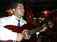 最初のカニは薬草か香草のスープで茹でたような感じでとてもおいしかったのですが、次にトリイさんが頼んでくれたやつもニンニクがたっぷり入ったこってり味で病みつきです。その後は交互に注文し、けっきょく1人6パイくらい食べたでしょうか。途中、トリイさんは店員を呼んでまた何やら言っています。するとその店員はおもむろにギターを持ってきて、我々のテーブルのすぐ横で歌い始めました。いわゆる「流し」ですね。2〜3曲聞いた後トリイさんはチップを上げていましたが、日本円で20円くらいのもんだそうです。