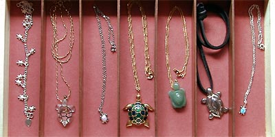 アクセサリーボックスに入らないカメのネックレスです。