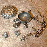 カメのペンダントトップです。最近はチェーン抜きで買うことが多いです。
